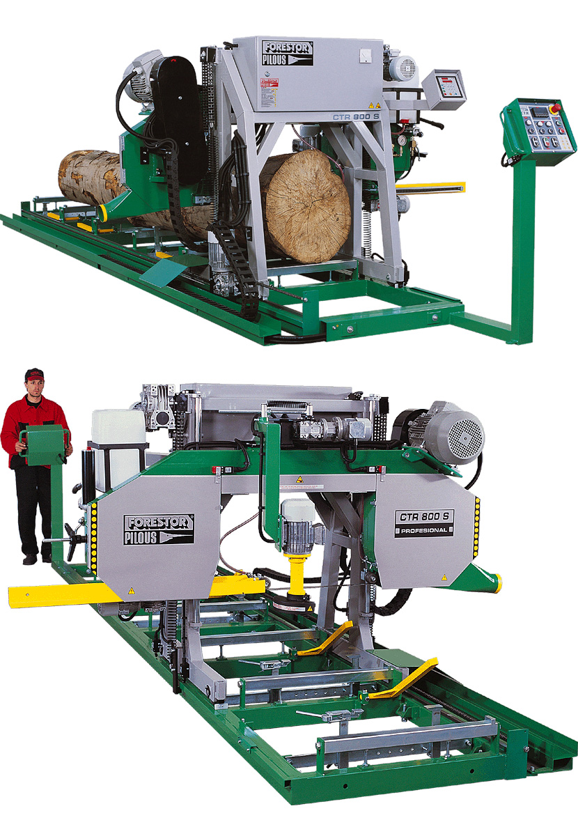 Basic version: main motor 7,5 kW, cutting length 1,95m, 3 log clamps, 2 anti-roll back stops/squaring arms.