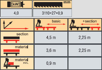 Basic version: main motor 4 kW, cutting length 3,6m 3 log clamps, 3 anti-roll back stops/squaring arms.